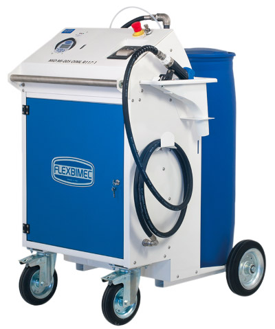 Sistema di rifornimento elettrico carrellato per AdBlue per fusti da 200 l, con contalitri certificato MID MI-005 per le transazioni commerciali.
